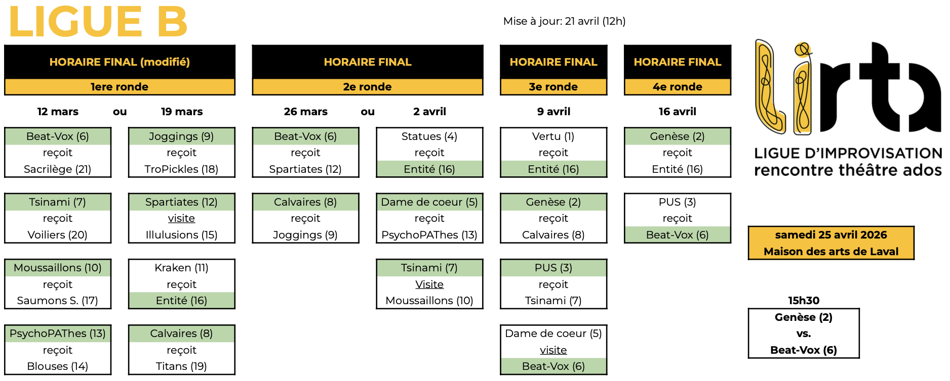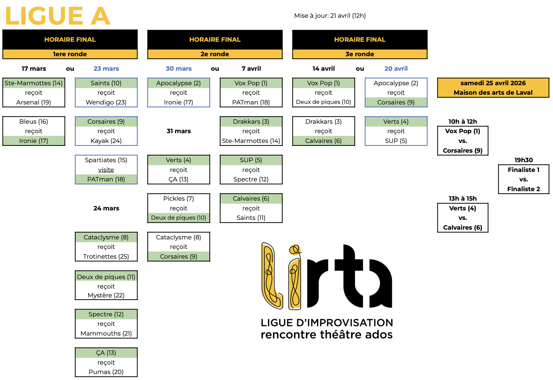 Calendrier des matchs